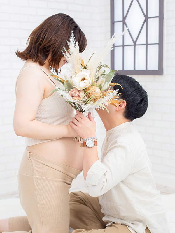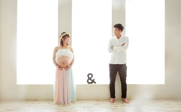 マタニティフォトを夫婦で撮ろう!おすすめのポーズや服装をご紹介マタニティフォトのフォトスタジオ・写真館はらかんスタジオ。