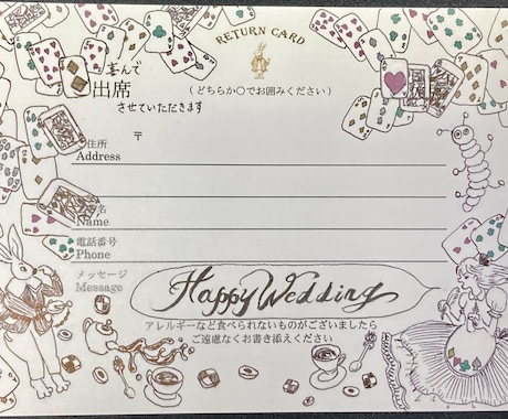 結婚式招待状返信アート 返信アート イラスト 招待状アート。