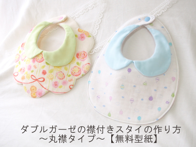 ダブルガーゼの襟付きスタイの作り方~丸襟タイプ~ 無料型紙あり : うろこのあれこれハンドメイド。