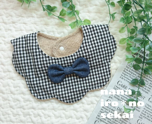 プチギンガムチェックのリボンスタイ☆ハンドメイドベビースタイ☆ダブルガーゼスタイ☆女の子☆男の子☆出産祝い スタイ・よだれかけ nana iro nosekai 通販 5986265Creema クリーマ。
