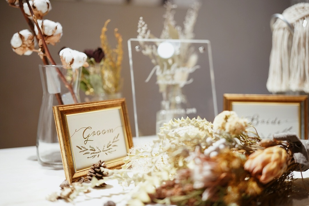 ドライフラワーと似顔絵ウェルカムボードで作るおしゃれなウェルカムスペースWORLD1マガジン。