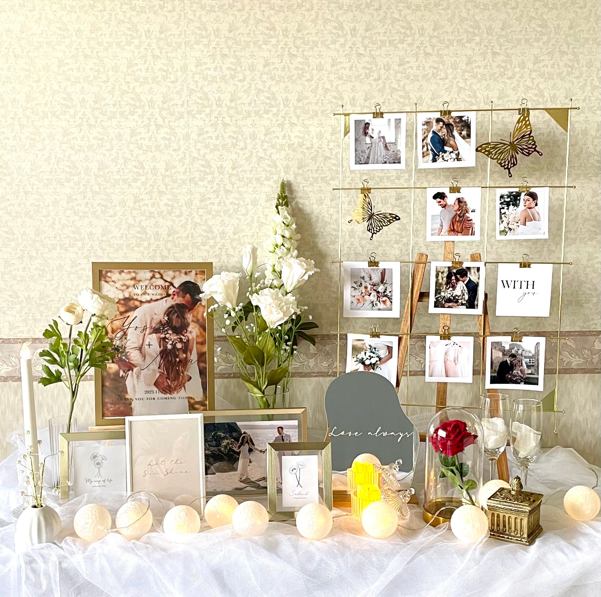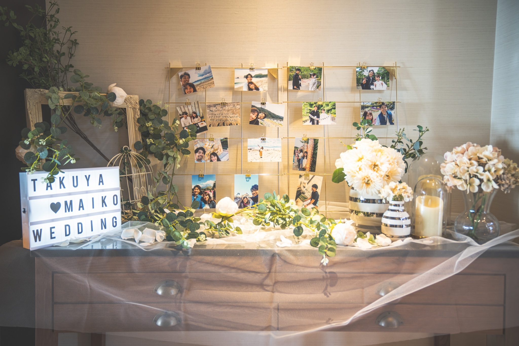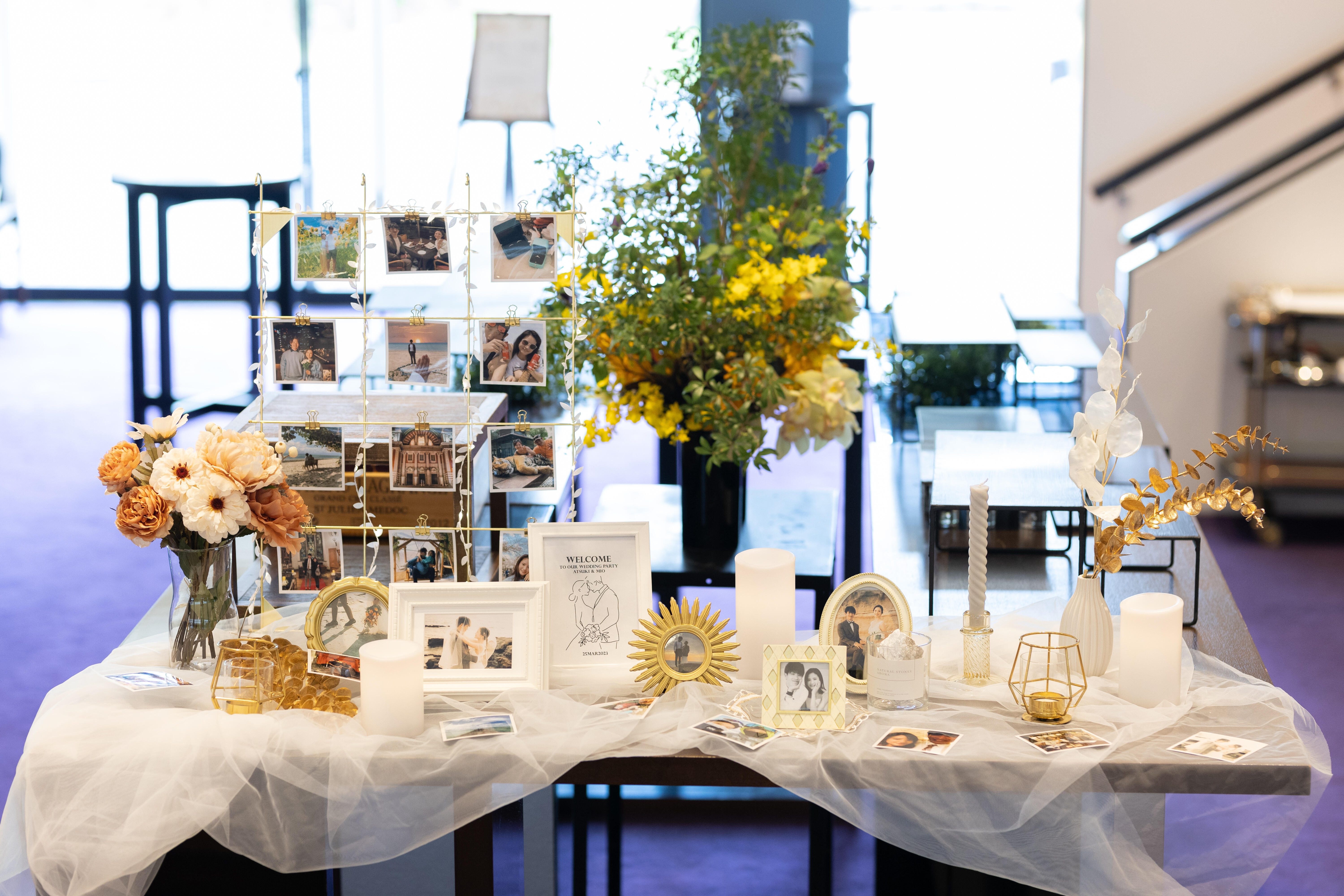 結婚式のウエルカムスペースのアイディア! ー写真を飾るープリザーブドフラワーショップ Yuan ユアン。