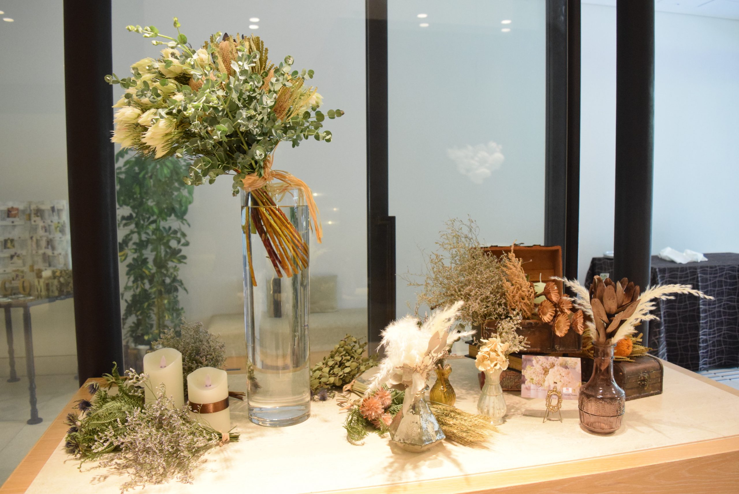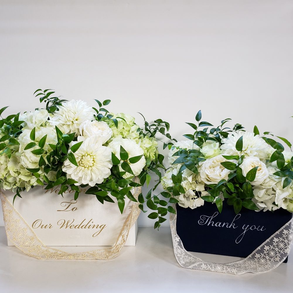 結婚式でウェルカムスペースを彩る今人気のフラワーアレンジメントプリザーブドフラワー教室「フラワーマリアージュ」。