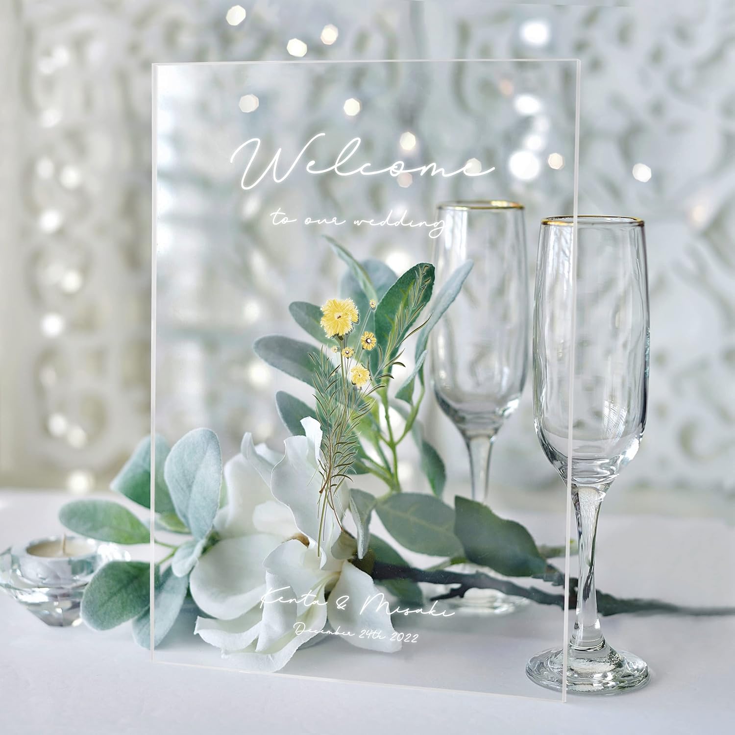 アクリル ウェルカムボード 結婚式 ウェディング ウェルカムスペース 花 小花柄 カフェ 0744 ウェルカムボード homefabpaper 通販15368364Creema クリーマ。