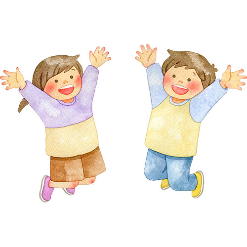 ジャンプをする子どもたちの水彩イラスト水彩の挿し絵屋さん。