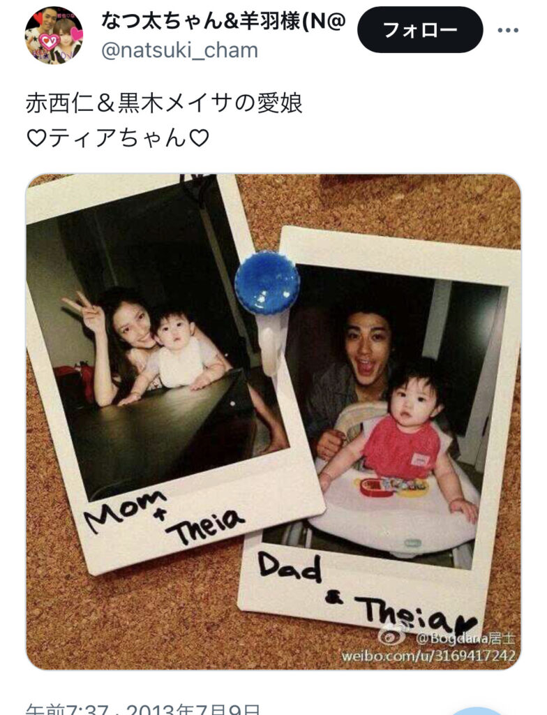 インスタ誤爆で画像拡散 名前はティア!赤西仁と黒木メイサの子供が可愛すぎる芸能人のヤバイ噂。