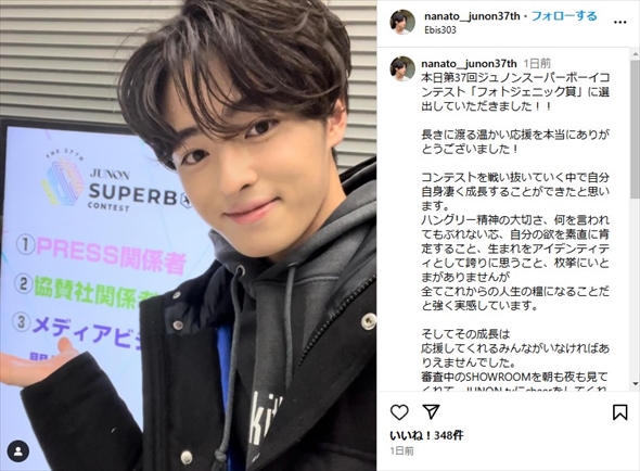 谷原章介&いしだ壱成の20歳長男、ジュノンボーイコンテストで受賞に“甘いマスクのほほ笑み” 家族には「プレッシャーかけず見守ってくれた」 1 2エンタメ ねとらぼ。
