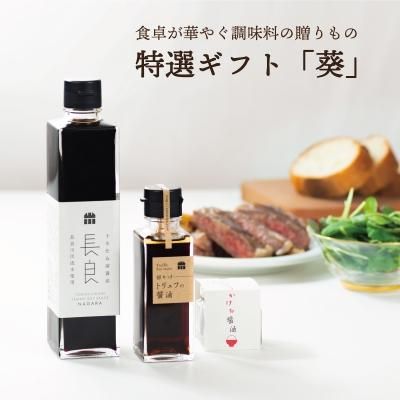 送料無料 たまり醤油とトリュフ醤油の特選ギフト『葵』 - たまりや 山川醸造株式会社。