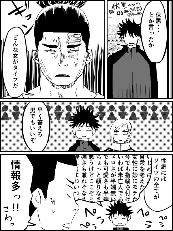 東堂が伏黒に好みの女 男 聞いて来た時、コイツ・黒髪清楚系処女好きそゆっけ さんのマンガツイコミ 仮。