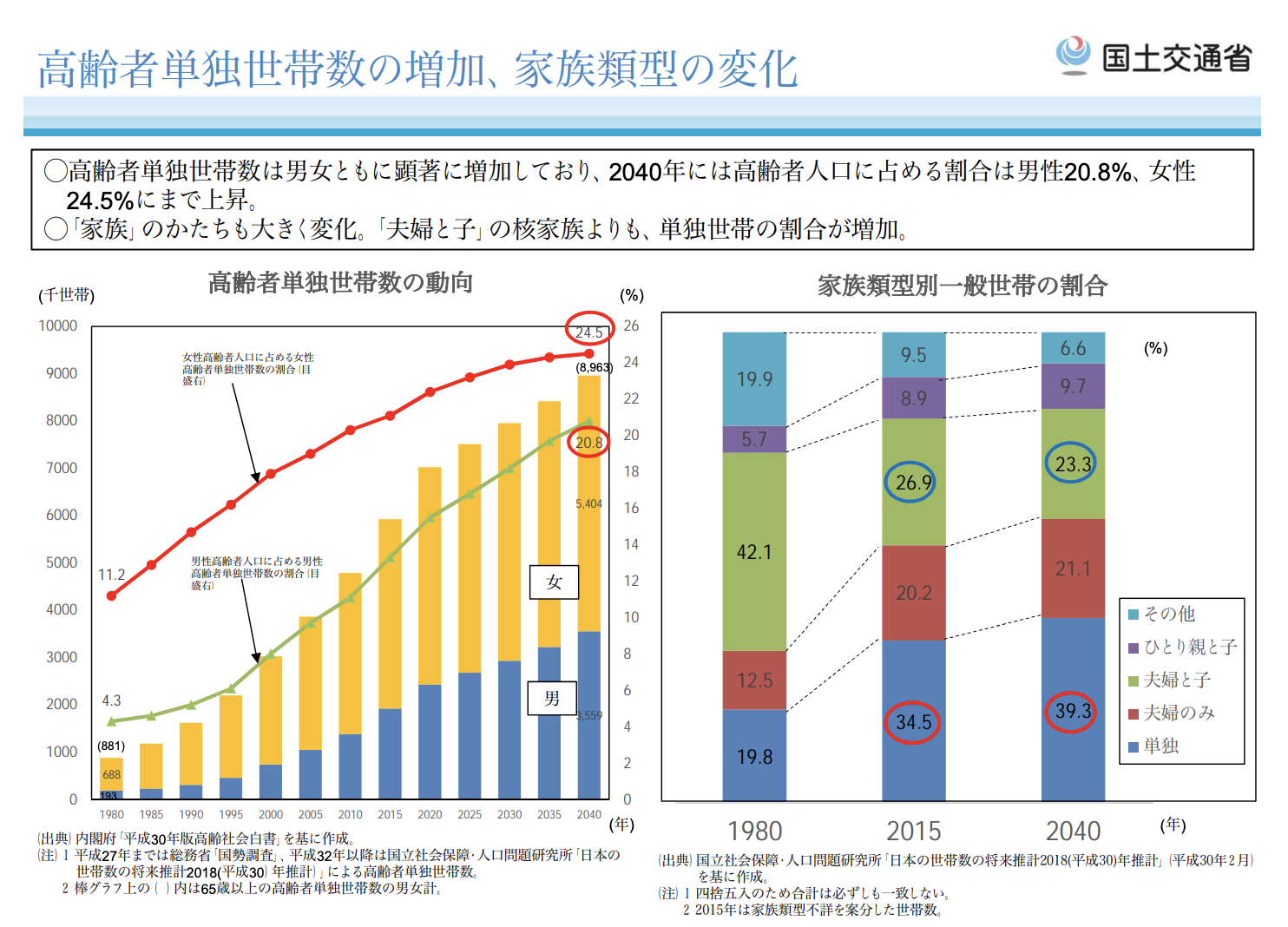 政策資料集 高齢者単独世帯数の増加、家族類型の変化石田まさひろ政策研究会。