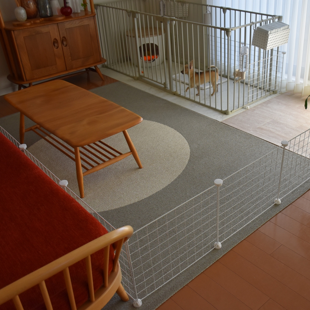 子犬と暮らす リビングに組み立て簡単な簡易ペットフェンスを設置しました 生後4ヶ月わが家のここち。