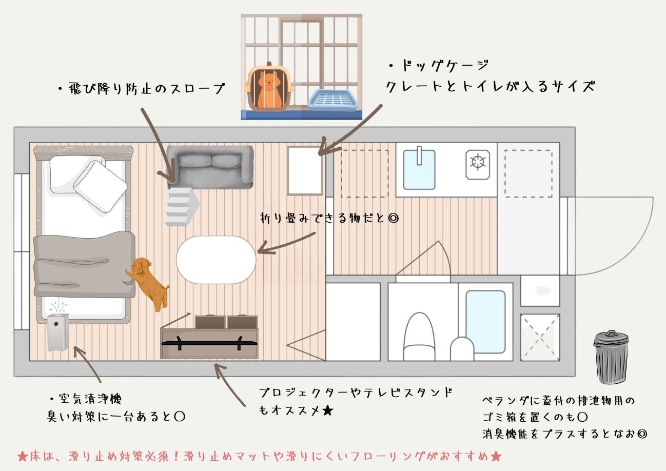 1K一人暮らしで犬と暮らす。いたずらを防ぐレイアウトのコツを紹介CHINTAI情報局。