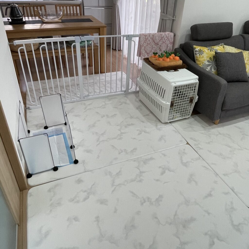 子犬を迎える準備 インテリアに馴染むケージとトイレとハウスを置きました Living Roomわが家のここち。