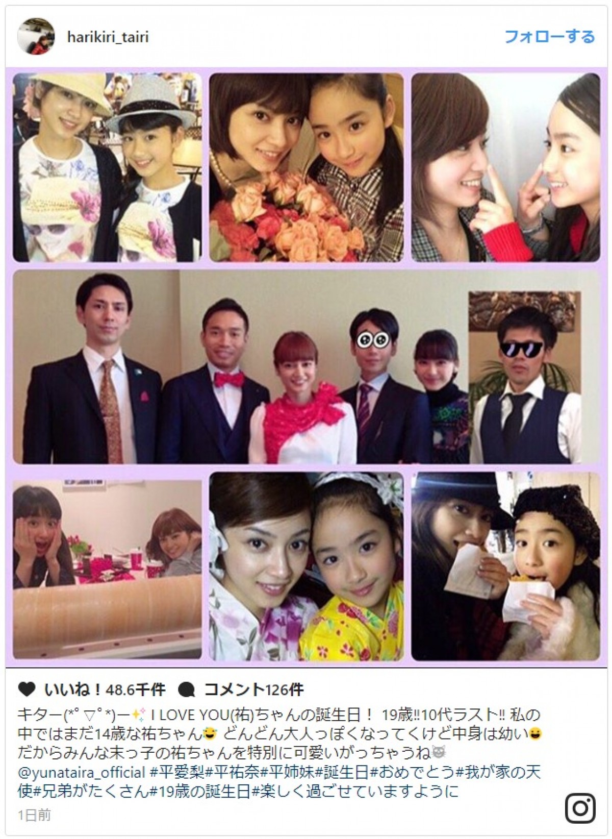 内山信二の美人妻・琴さん、「#ほぼ家族」の平祐奈24歳誕生日をお祝い「素敵な関係ですね」の声 - スポーツ報知。