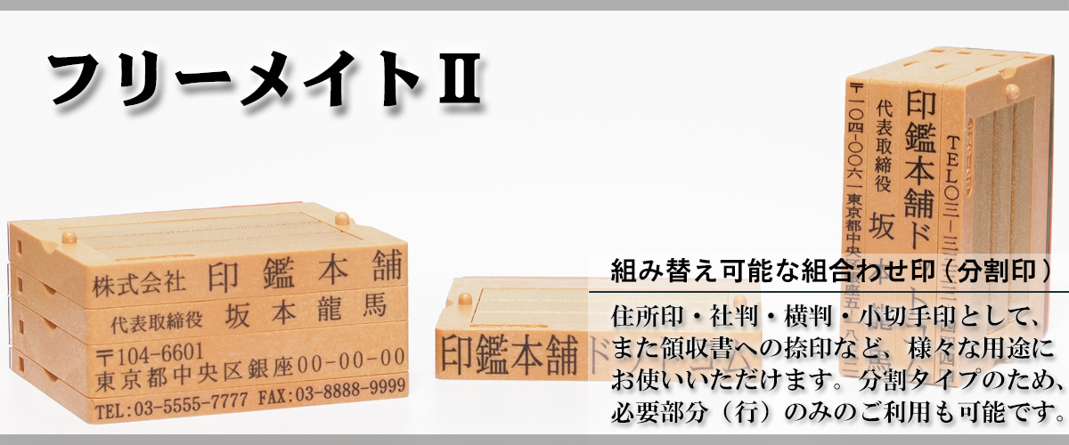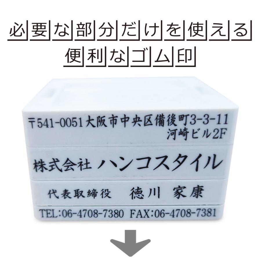 楽天市場ゴム印 フリーメイトII 4段 住所印 社判 組み合わせゴム印 分割印 親子判 会社住所印 個人住所印 オーダーメイド :はんこdeハンコ楽天市場店。