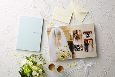 二人の結婚式や大切な思い出をウェディングフォトブックやグッズに残そう。