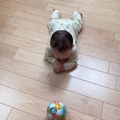 生後7か月の赤ちゃん ほふく前進 ずりばい の練習中★好きなものでハイハイを促す★ がっちゃんくらぶ。