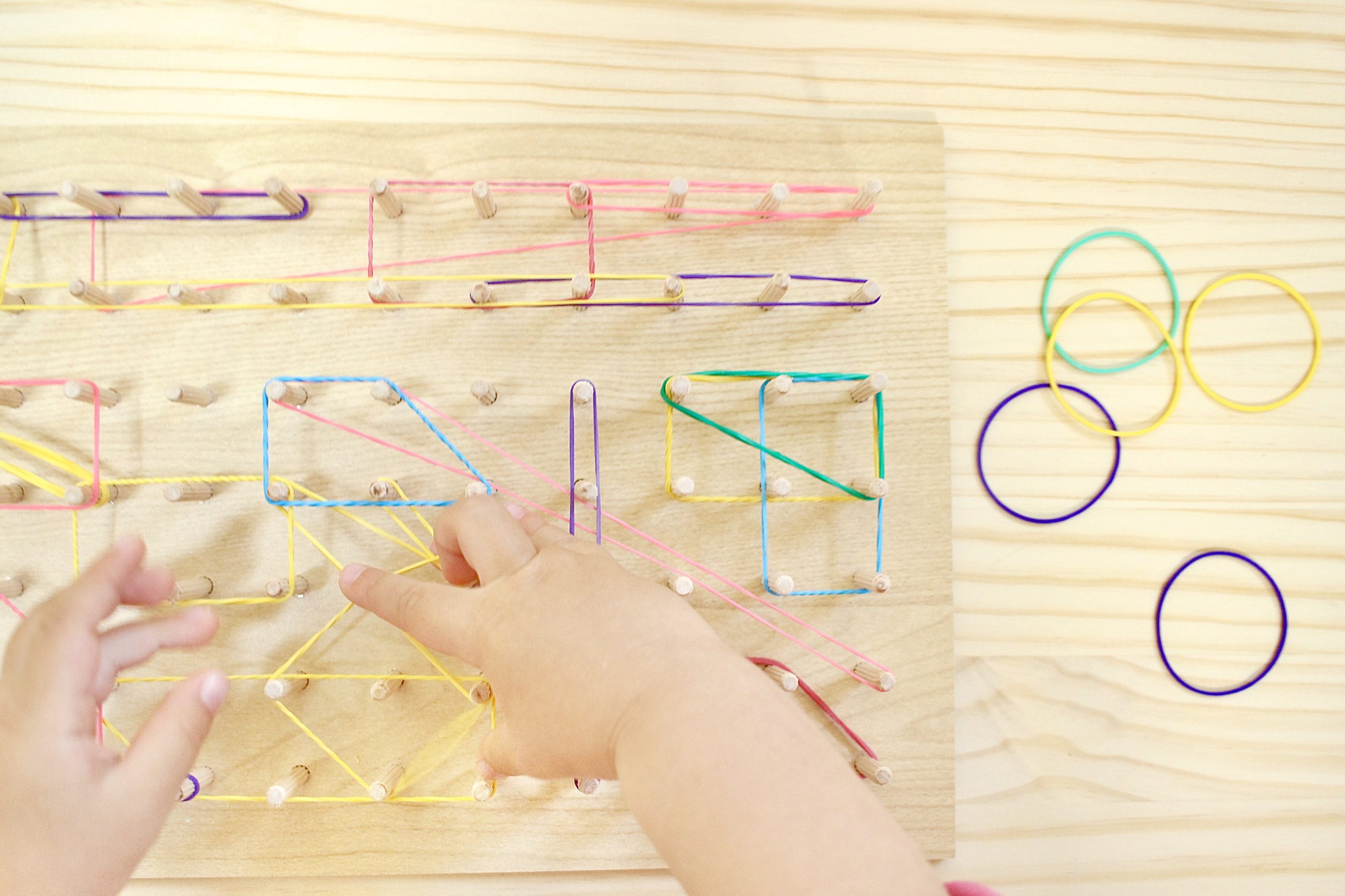 ダイソー の 有孔ボード で知育おもちゃを簡単手作り2歳3歳~ 「ジオボード」の作り方おうちdeモンテ。