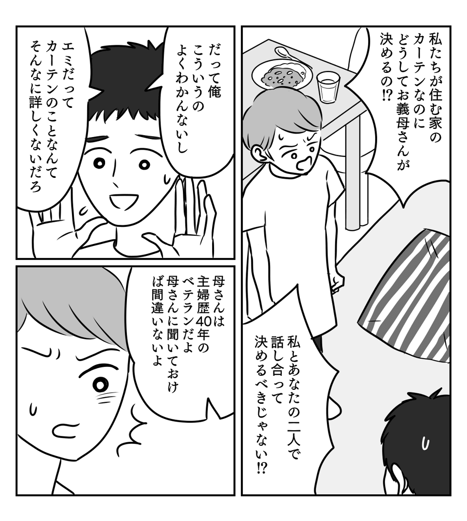 母親大好き夫>新居のカーテン選びに義母を誘っていた!身勝手な旦那にモヤモヤ 後編まんがママスタセレクト - Part 4。