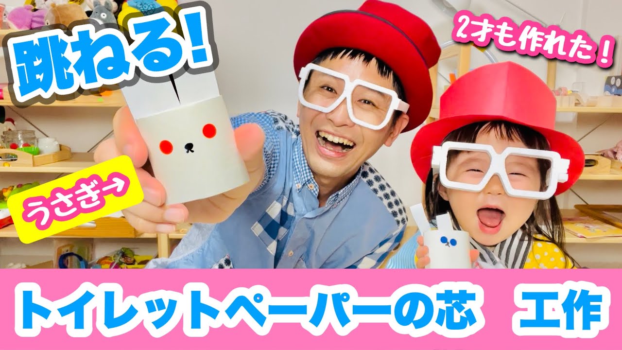簡単工作 2歳も作れる!トイレットペーパーの芯で!ピョンピョンうさぎ 廃材工作・遊べる工作・手作りおもちゃ娘と工作 Cute!!How tomake Rabbit 保育園製作・高齢者レク。