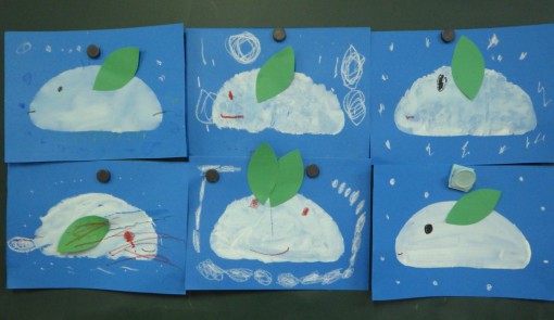 2月製作 きらきら雪うさぎ 保育園・幼稚園・こども園- ほいくのおまもり。