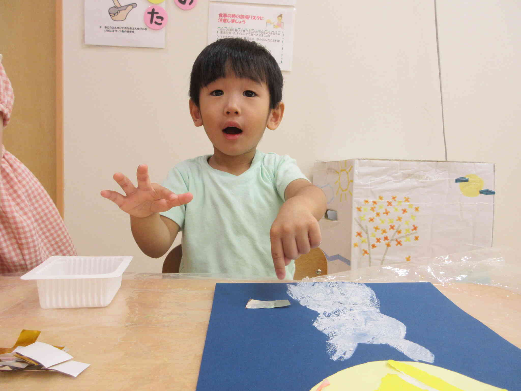 魚製作 うさぎ組2歳児 ①ニチイキッズ京都さがの保育園ニチイキッズ。