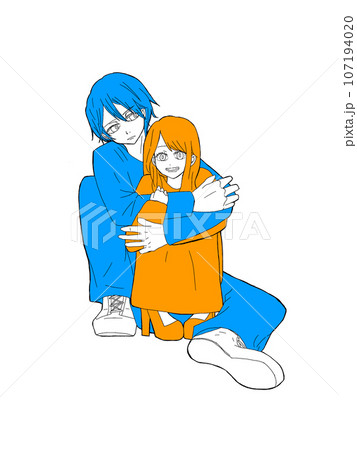 バックハグをして座る男女のイラスト。アベック。カップルのイメージイラストのイラスト素材107194020- PIXTA。