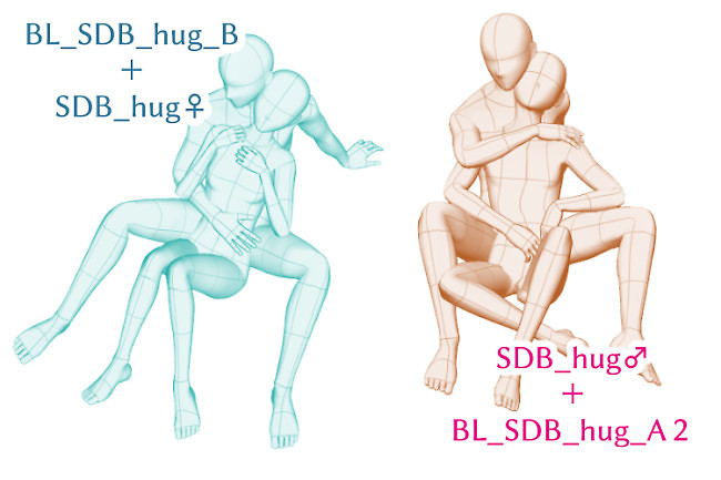 座り後ろハグset - CLIP STUDIO ASSETS。