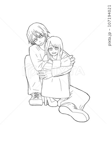 バックハグをして座る男女のイラスト。アベック。カップルのイメージイラストのイラスト素材107194021- PIXTA。