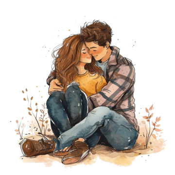 幸せなカップルは外で抱き合って座るイラスト素材透過、PNGフリー画像ダウンロード - Pngtree。
