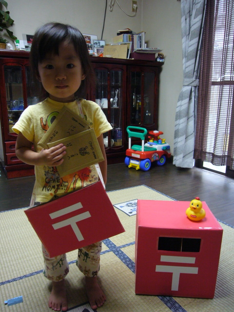 手作りポストで郵便屋さんごっこ - 子どもと住む1LDK。