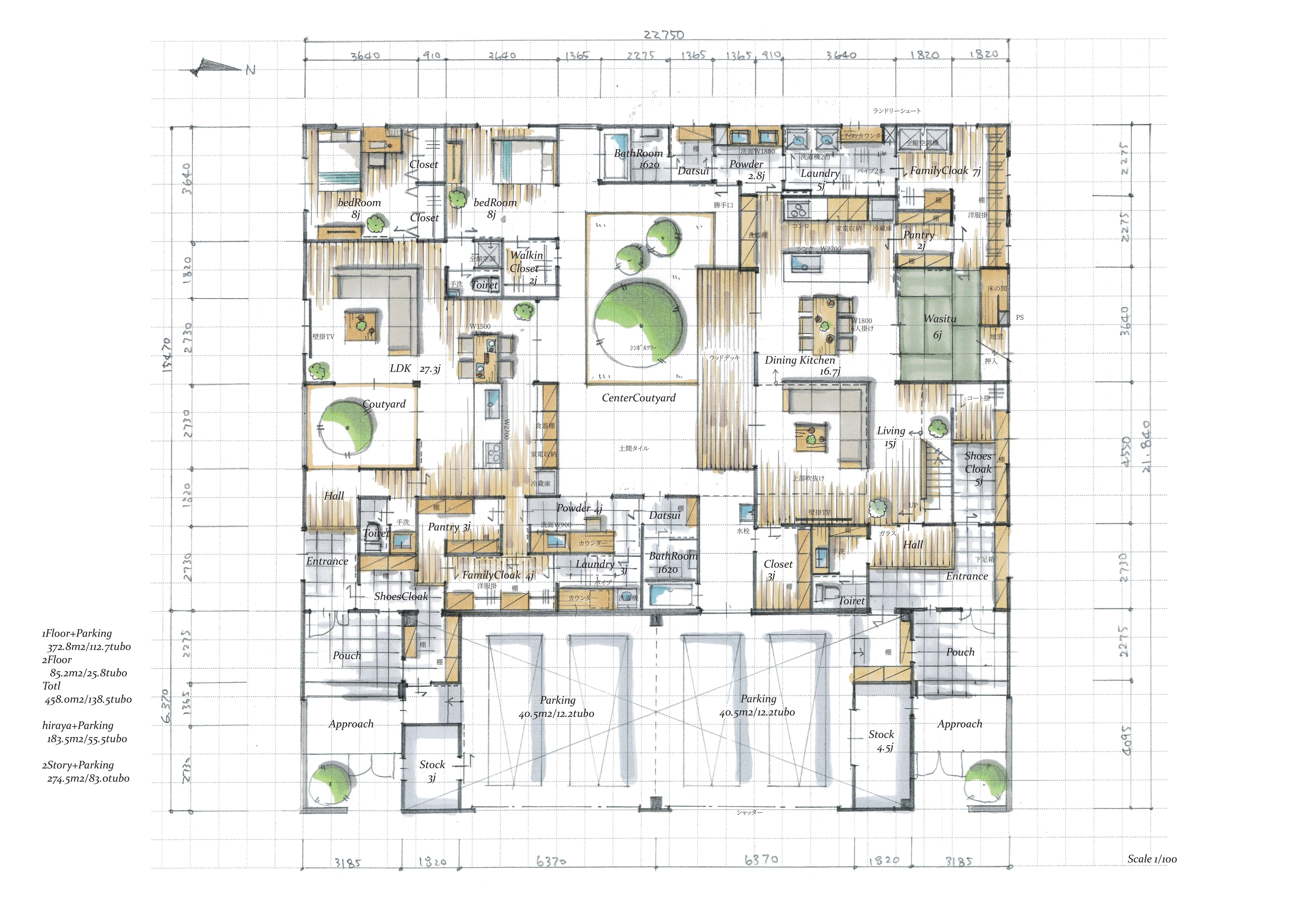 中庭を囲んだコの字型の二世帯住宅やなぎさわ建築設計室の日誌。