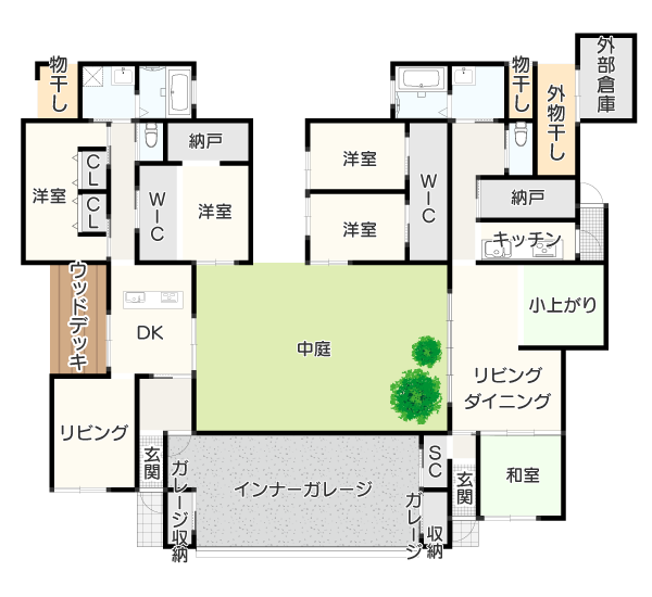 平屋の二世帯住宅│コの字でつくる間取りのメリット・デメリットとはwellhomes。