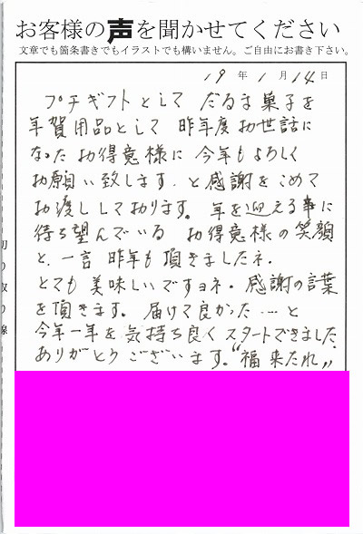 お客様の声和菓子・スイーツの手土産なら大阪枚方・交野の大黒屋。