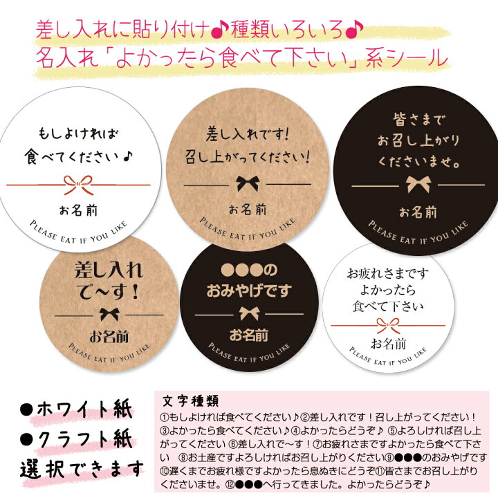 楽天市場名入れ よかったら食べて下さいシール 文言選べる! 差し入れシール お土産シールホワイト紙・クラフト紙セミオーダーシール 差し入れ お土産おみやげ お菓子 メッセージ 職場 手土産 お菓子に添える メッセージカード : メイドインたんたん。