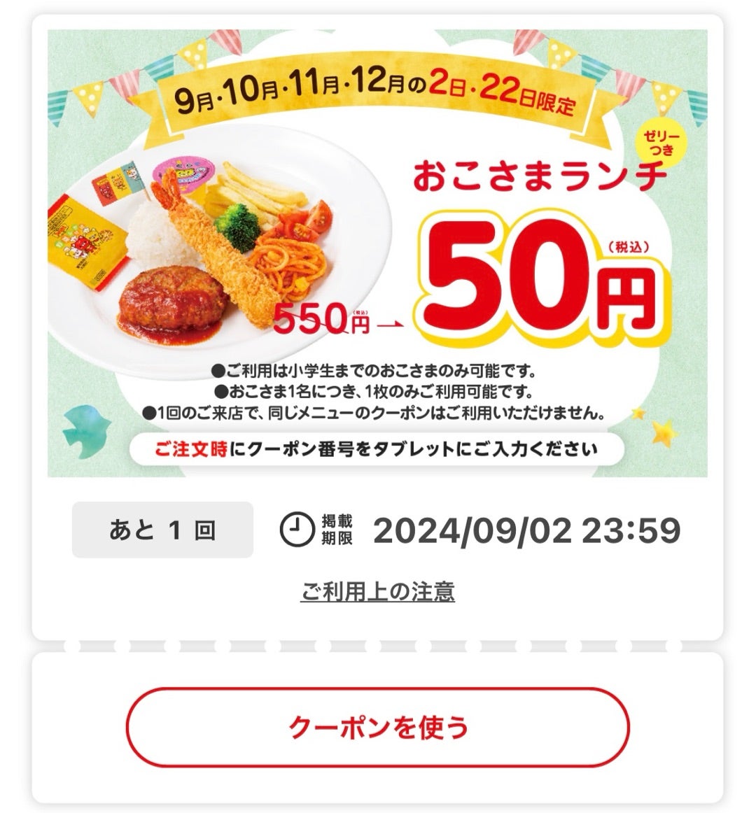 デニーズのキッズメニュー50円になるクーポンを使ってみました!気を付けたいポイントも伝授育児のつれづれ by 東京ダック。