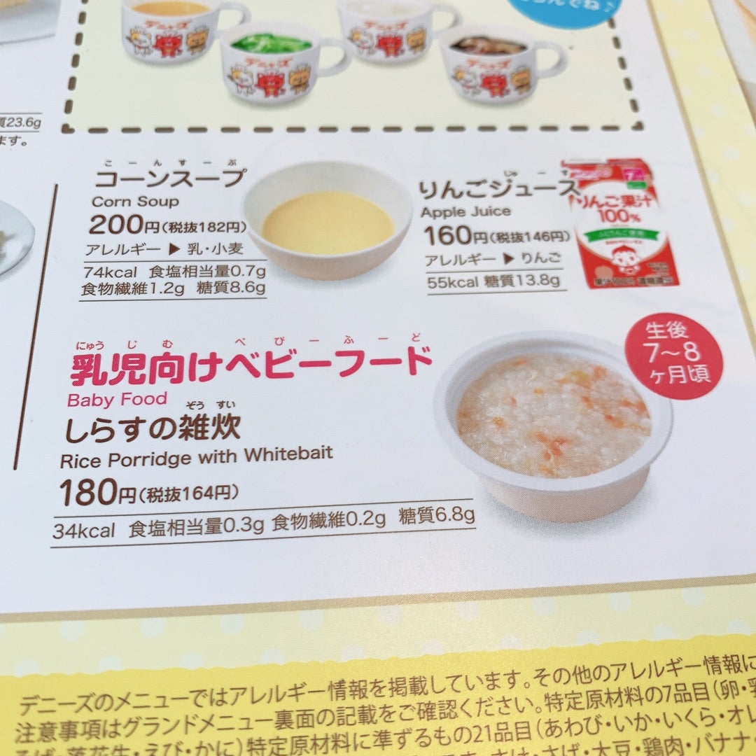 kari☺︎ on X: "④デニーズ チェア⭕️ 離乳食提供 しらすの雑炊 ⭕️ キッズメニュー⭕️ 3歳までドリンクバー無料⭕️ メニュー 豊富で美味しくて私はデニーズ好き✌️だけど、取り分けできる大人用メニューは少ない印象。1歳半過ぎてからこのへんをよく頼んでる。
