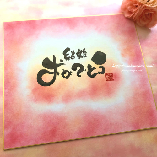 寄せ書き色紙 結婚祝い 言葉、背景色 変更可能です♪ 書道 筆文字アートnana* 通販 8730430Creema クリーマ。
