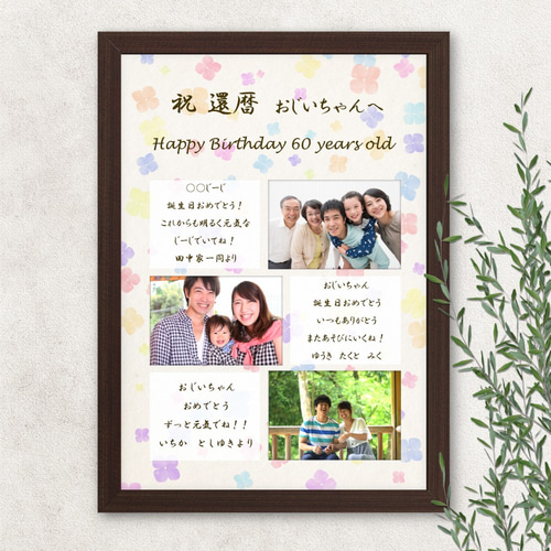 寄せ書き色紙 写真を貼るスペース付き 金婚式、銀婚式などのお祝いにもオススメ!文字、背景色 変更可能です♪ 書道 筆文字アートnana* 通販18609815Creema クリーマ。