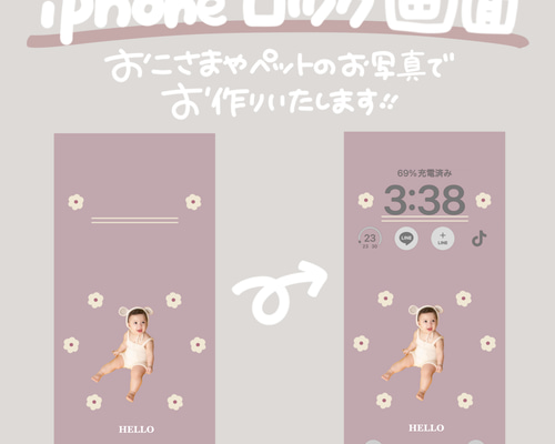 iPhone 壁紙 待ち受け ロック画面 お子さまやペットのお写真でお作りいたします✳︎ - Bibi studiominne byGMOペパボ国内最大級のハンドメイド・手作り通販サイト。