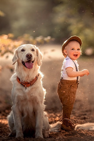 小さな子供と2匹の笑顔 640x1136 iPhone 5 5S 5C SE 壁紙、背景、画像。