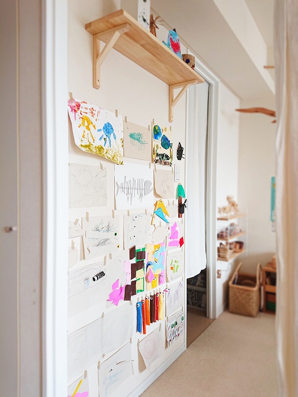 子どもの作品を飾ると部屋が片付く!我が家の絵と工作展示スペースYUKI CO YUKI ユキコユキ。