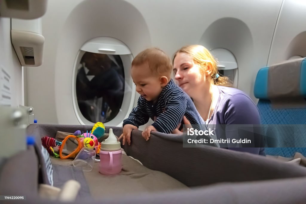 飛行中の特別な赤ちゃんの用バシネットへの関心 乳児は飛行機で母の手で遊んでいる お母さんと旅行 - 飛行機のストックフォトや画像を多数ご用意 - 飛行機,新生児, 旅客機 - iStock。
