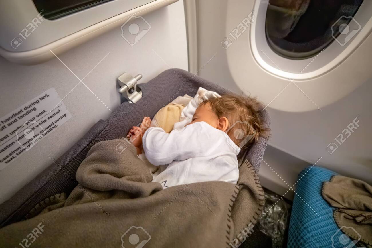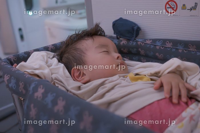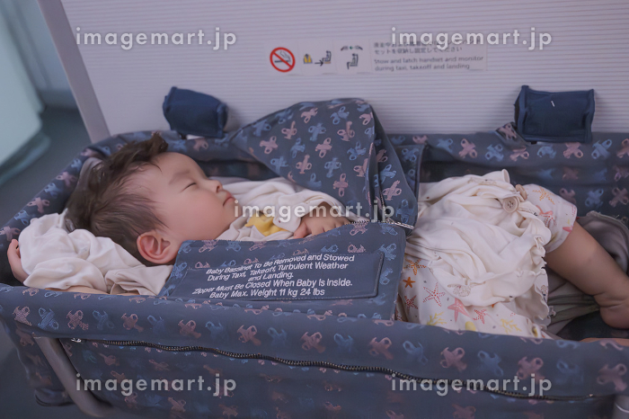 飛行機内のバシネットで眠る赤ちゃんの写真素材237812029- イメージマート。