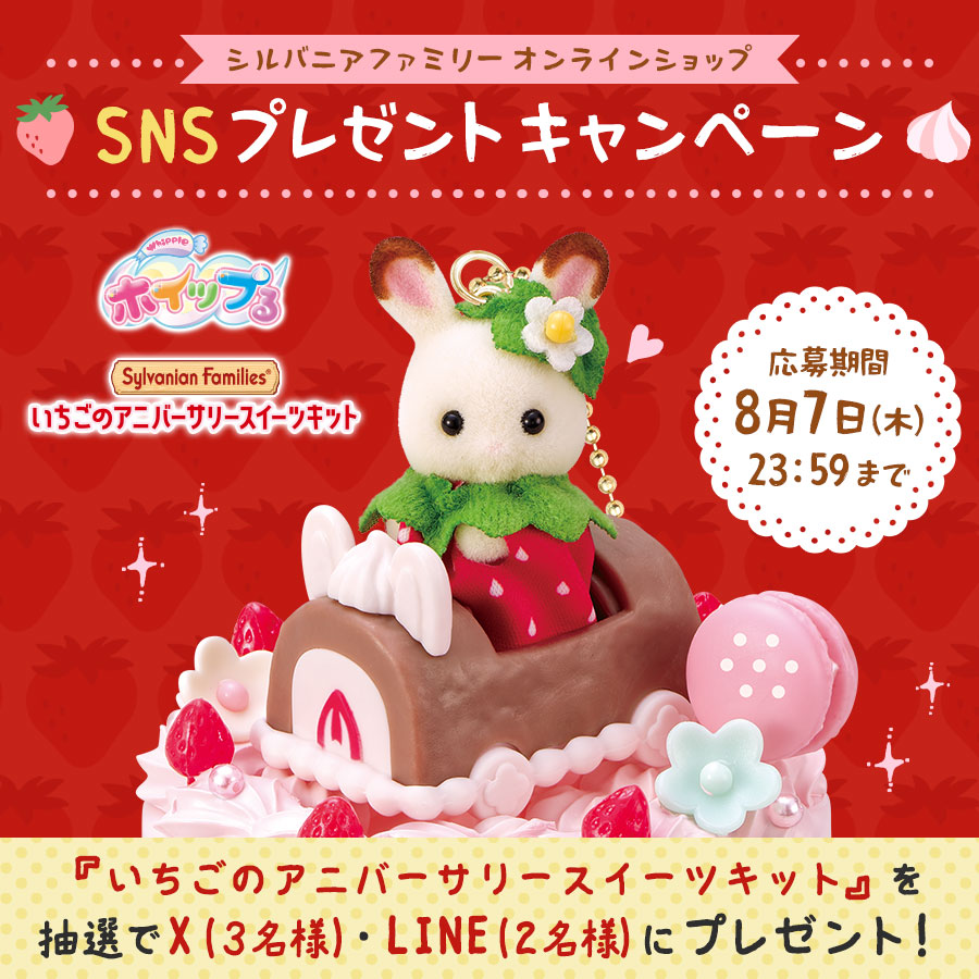 📣8 9 土 発売! \ ホイップるにシルバニアファミリーのお人形がついた 『シルバニアファミリーいちごのアニバーサリースイーツキット』が新登場!🍓https:morino-ouchi.jp news sp newarrival2508-2.html対象商品をご購入の方にオリジナルポストカードをプレゼント。