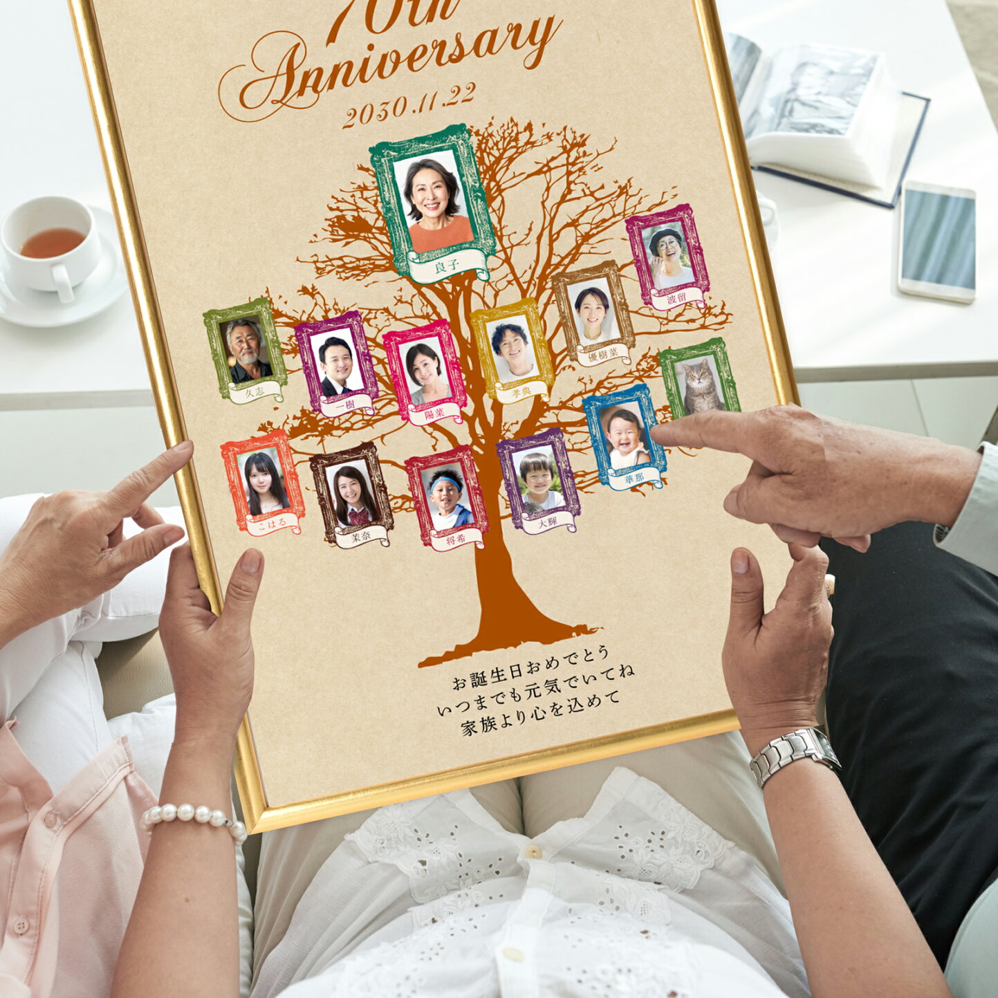 楽天市場 長寿祝い 誕生日 プレゼント 家系図 両親プレゼント 家族写真 変わり種 感動の贈り物 名入れ ゴールド オリジナルギフト 記念品記念ギフト お祝い ギフト 還暦・古希・喜寿・傘寿・米寿 特別な誕生日に長寿祝いで贈る ファミリーツリー: 結婚式メモリアル。