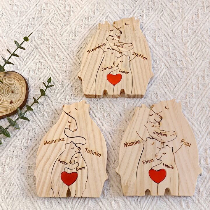 楽天市場 置物 名入れ 名前 木札 木製 パズル おもちゃ 家族 クリスマス ギフト プレゼント 出産祝い ギフトセット 木製おもちゃ 積み木 男の子女の子 名前入り 名入れ無料 可愛い 天然木 メッセージ入り 抱き合う くま ベア 動物 父の日 母の日 子供の日 彼女 彼氏 友達。