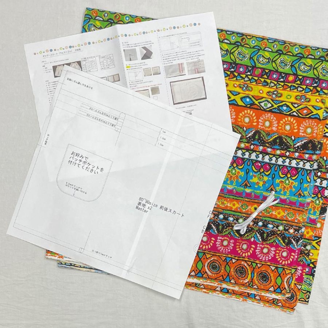 型紙不要 1mで作れる、直線裁ちのこどもギャザースカートnunocoto fabric。