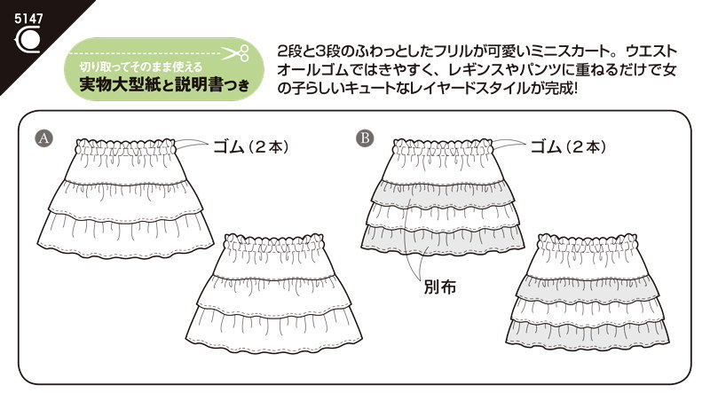 2段と3段のふわっとしたフリルがかわいいミニスカートの型紙 商品詳細生地と雑貨のお店 PERURU手芸用品を多数取り揃え大阪府堺市。