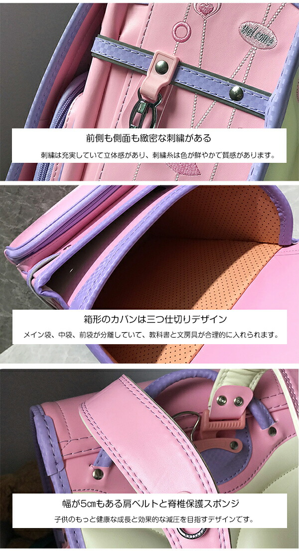 ランドセル 入学 バッグA4教科書ノート対応サイズランドセル 人気 自動ロック 軽量 エレガント 防水 刺繍 パープルLINEブランドカタログ。